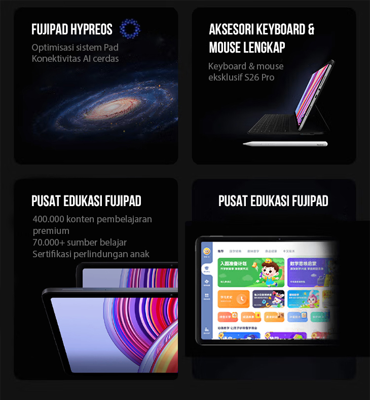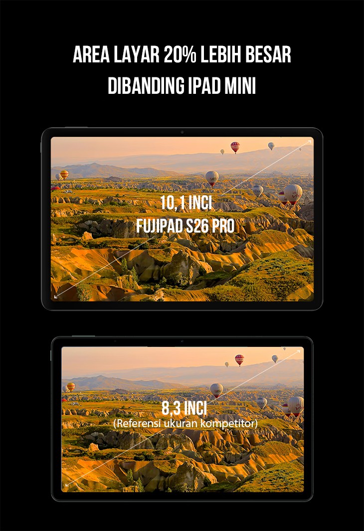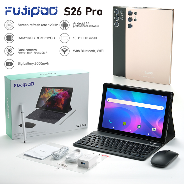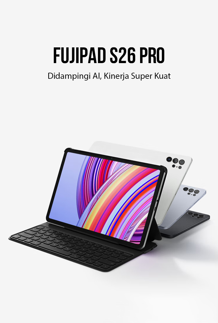 (Bonus Keyboard + Mouse + Case) Promo Spesial 1,499 Juta!!! FujiPad S26 Pro terbaru, layar 10,1 inci 2,5K super jernih, RAM 16GB + ROM 512GB, dukungan 5G, prosesor Snapdragon 7S Gen2.